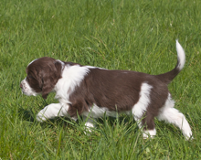 Heute ging es für die 7 in der Zwischenzeit sechs Wochen alten Welpen zum ersten mal hinaus in die freie Natur! Die unten stehenden Photos zeigen, wie prächtig sich der Wurf entwickelt.
